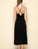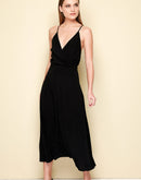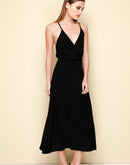 Our classical Mila Dress embodies the strength found in femininity. Featuring a deep V-neckline and a slight wrap fit . Clean High waist with pleated details all along.Very low back with Zipper. A-line skirt. Ankle length. Unlined.
