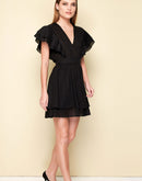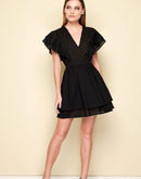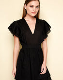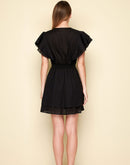 Perfect Milkandroses outfit for a romantic date. Mini dress coton with a beautiful V- neckline. Short sleeves with double ruffles going all along torso. High waist fitted with smoke elastic at back .double layer mini skirt. Available in White and Roots. Partialy lined.