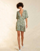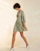 Make a statement in our colorful, flowy Colette Short dress in Sunshine Green colorway.