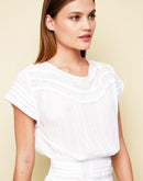 Our sweet Milk & Roses signature dress for a daily escape or an event if heeled. Featuring a high rounded neckline and delicate pleats details below.Short sleeves with pleated details.Center...