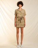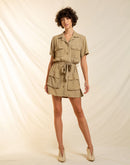"Stand out in style with our unique Pandore Dress in Sweet Khaky."