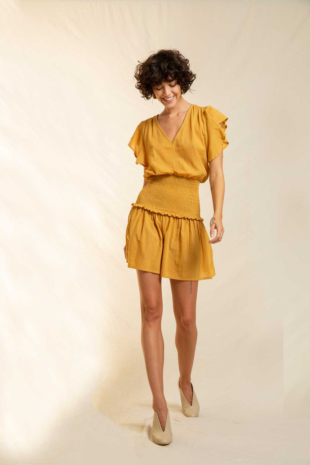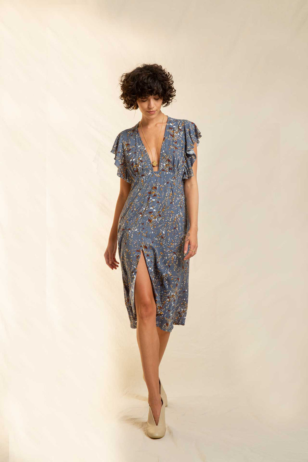 "Stand out in style with our unique Pandore Dress in Sweet Khaky."