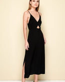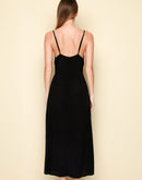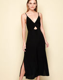 Meant for both memorable occasions and throw-on moments,dress it up, dress it down, wear it often. Slim line slip dress. Deep V-neckline. Adjustable spaghetti straps. Fixed front keyhole detail.